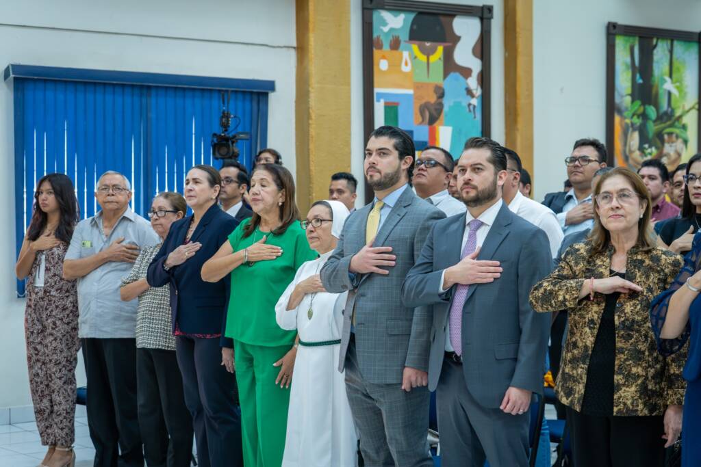 Entre los momentos destacados se incluyeron la interpretación de los himnos nacionales de El Salvador y de los Estados Unidos de América, la oración del Padre Nuestro en latín y la proyección de un video homenaje que recopiló parte de la valiosa contribución del Dr. Arieta Vega a lo largo de su carrera.