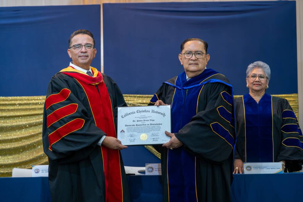 La Universidad de Oriente (UNIVO) realizó un solemne acto académico en el que California Christian University confirió el título de Doctor Honoris Causa en Divinity al Dr. Pedro Arieta Vega, Rector de la UNIVO, en reconocimiento a su destacado legado, liderazgo y trayectoria en el servicio a la educación superior y a la comunidad.